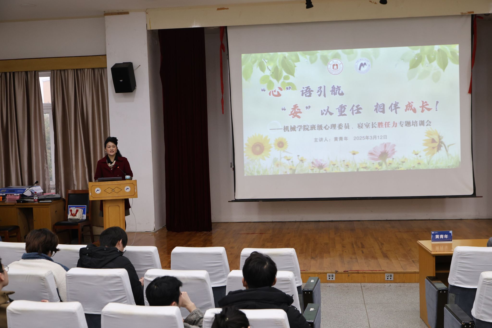 “E-青年工作室”负责人、宁波市家庭教育研究指导中心专家库成员、国家三级心理咨询师、律师信息学院专职辅导员黄青年老师担任主讲,为120余名心理委员及寝室长带来了一场兼具专业性与实用性的专题培训。