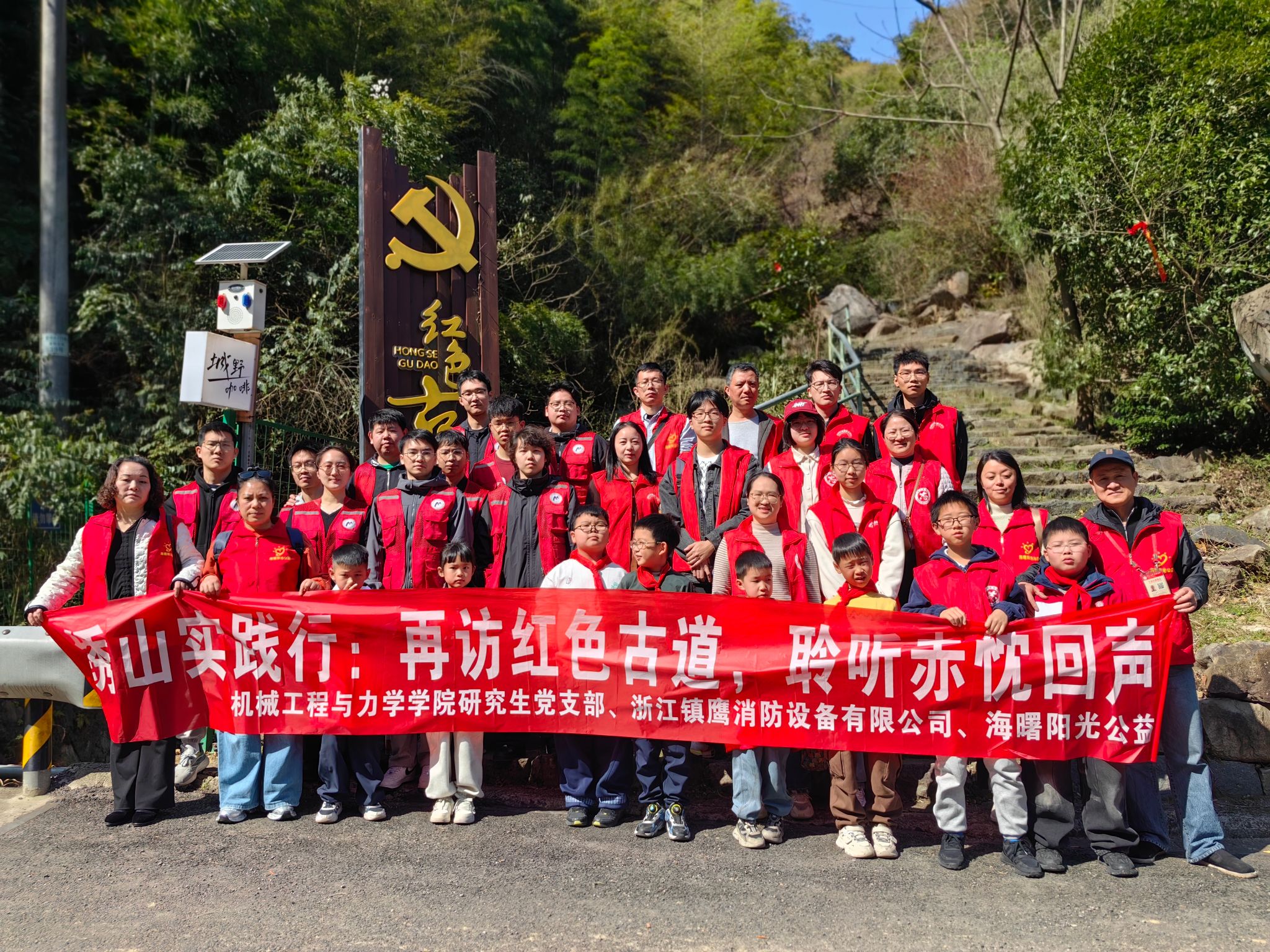 学生党支部联合浙江镇鹰消防设备有限公司和海曙阳光公益团队,赴朱敏村和红色古道开展主题党日活动,研究生辅导员潘晶婧、钱锦老师带队,机械工程研究生第三党支部和第六党支部共10余名党团员参与。