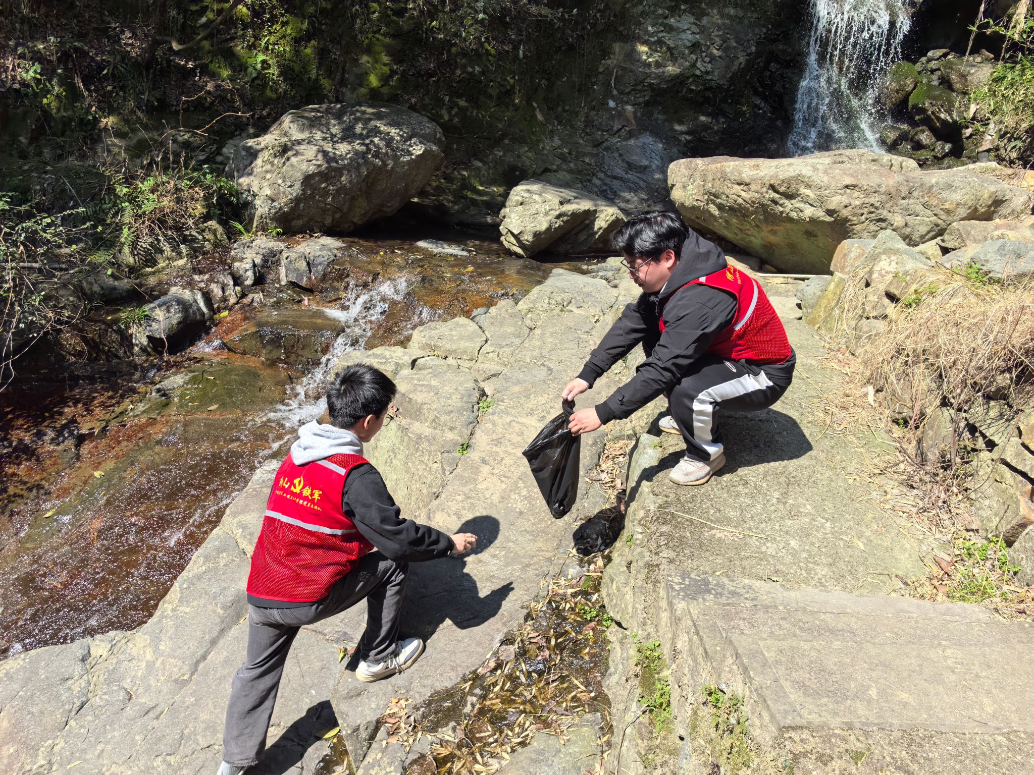 在古道旁的烈士雕像前,全体人员庄严肃立,向烈士敬献鲜花,表达深切缅怀之情。随后,党员们主动承担起擦拭烈士雕像的任务,细心清理雕像上的灰尘与污渍,以实际行动表达对先烈的敬意。 在重走红色古道的过程中,志愿者们手持垃圾袋,沿途捡拾塑料瓶、烟头、纸屑等垃圾,用实际行动守护这片红色热土。