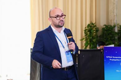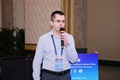 会议第二天,各位报告者展示了其在波动与智能材料领域的前沿研究。北京大学黄国良教授介绍了非厄米拓扑材料在工程中的应用;都灵理工大学Erasmo Carrera教授利用CUF方法实现Kagome晶格结构超材料的非线性复杂行为的高效模拟;哈尔滨工程大学的吴志静副教授研究了新型结构的振动减弱特性;俄罗斯库班国立大学Evgeny Glushkov教授则从理论和实验角度研究了压电器件中的波过程;河南理工大学禹建功教授聚焦于板状结构中多模导波的表面尺度参数;电子科技大学的桥本研也教授回顾了声表面波器件仿真技术进展;浙江大学陈伟球教授讲解了在超弹性介电材料结构中操控波的策略;库班国立大学Natalia Glushkova教授团队分享了通过积分方程研究压电贴片与弹性基底的相互作用;库班国立大学的Artem Eremin研究员提出了一种混合数值方法模拟表面压电换能器激发的弹性导波;北京理工大学朱睿教授出“零模”设计方法,实现弹性波广谱调控;天津大学王艳锋教授展示了通过相变实现的声波跨媒质透镜增强;浙江大学伍斌教授则研究了软电活性材料结构中的波动行为;北京大学李法新教授探讨了压电陶瓷中的线性与非线性电弹性效应;国防科技大学方鑫教授介绍了基于非线性失稳的超材料结构的振动与动力学特性。