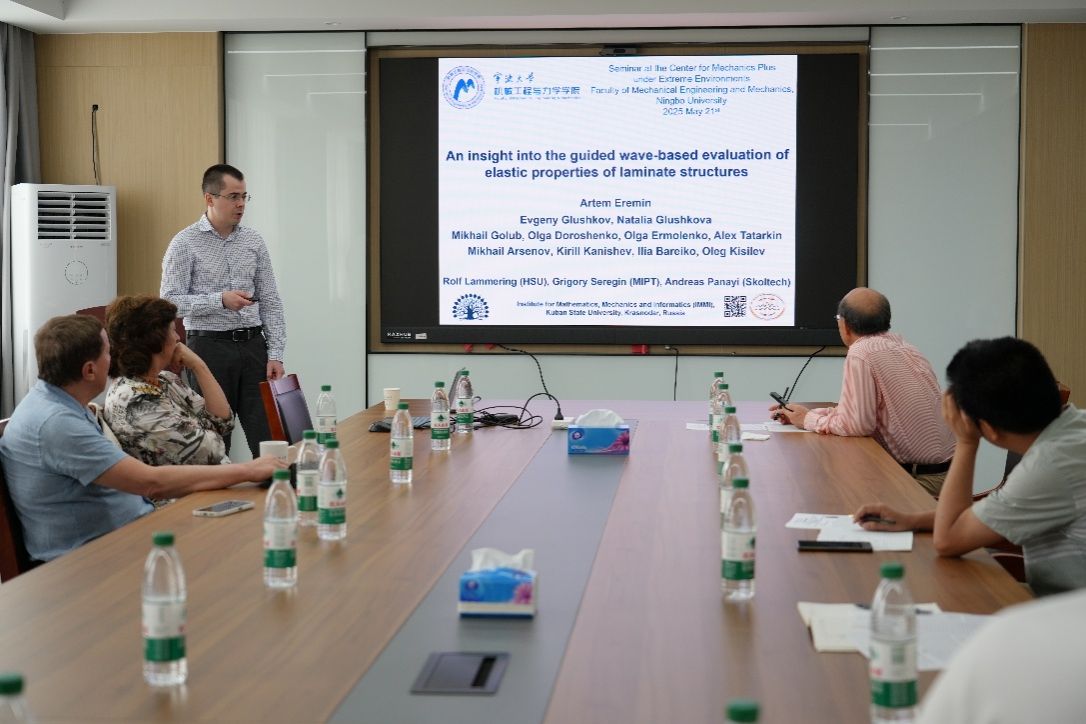 5月21日下午,俄罗斯库班国立大学Evgeny Glushkov教授、Natalia Glushkova教授和Artem Eremin博士一行受邀访问成人动漫 极端环境交叉力学研究所,并为学院师生带来两场精彩的学术报告。报告会由张传增院士主持,学院相关专业师生积极参与交流学习。Evgeny Glushkov教授的报告题为“Asymptotics of ultrasonic sounding field in anisotropic materials”,重点介绍了其研究团队构建的物理模型。该模型用于模拟强非均质材料(如涡轮叶片的单晶合金、复合材料和焊接接头)中超声波换能器的波场,能够描述准球形体波在任意非均质弹性半空间中的传播。Artem Eremin博士的报告题目为“Guided wave-based evaluation of elastic properties of laminate structures”,他从评估弹性波色散曲线的实验方法与数据处理技术、数值稳定方法与目标函数优化、对不同类型层压材料的研究实例分析三个方面展开,深入探讨了如何利用弹性波评估薄壁层压材料弹性特性的理论与实验。Evgeny Glushkov教授、Natalia Glushkova教授和Artem Eremin博士的分享内容深入浅出,涉及弹性波和超声波在复杂材料中应用的理论、模型、实验方法以及实例分析等方面,引发了与会师生的积极思考和热烈讨论,既拓宽了师生们的学术视野,更深化了大家对超声波和弹性波在实际应用中挑战和机遇的理解。(图文:李琼 极端环境交叉力学研究中心)