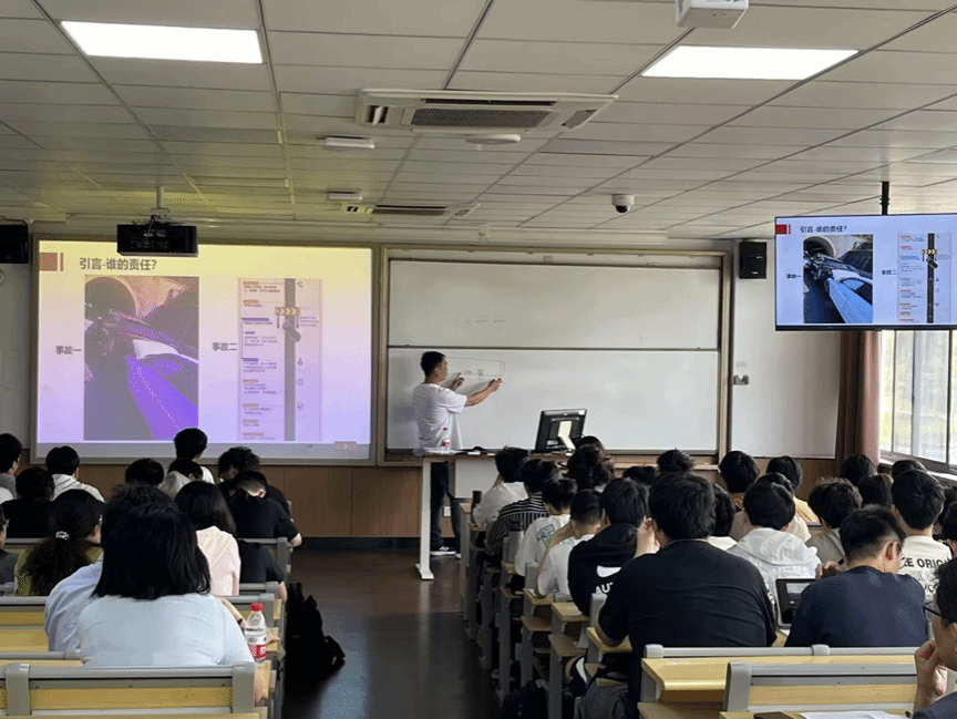 陈秀勇教授以人工智能技术发展为切入点,结合人性伦理、社会责任等思政元素,引导学生思考人工智能科技创新的价值导向。课程中,通过多个生活案例分析与互动讨论,生动诠释了专业知识与思政教育的有机融合。最后,陈秀勇教授对学生们提出的问题做了耐心解答。
