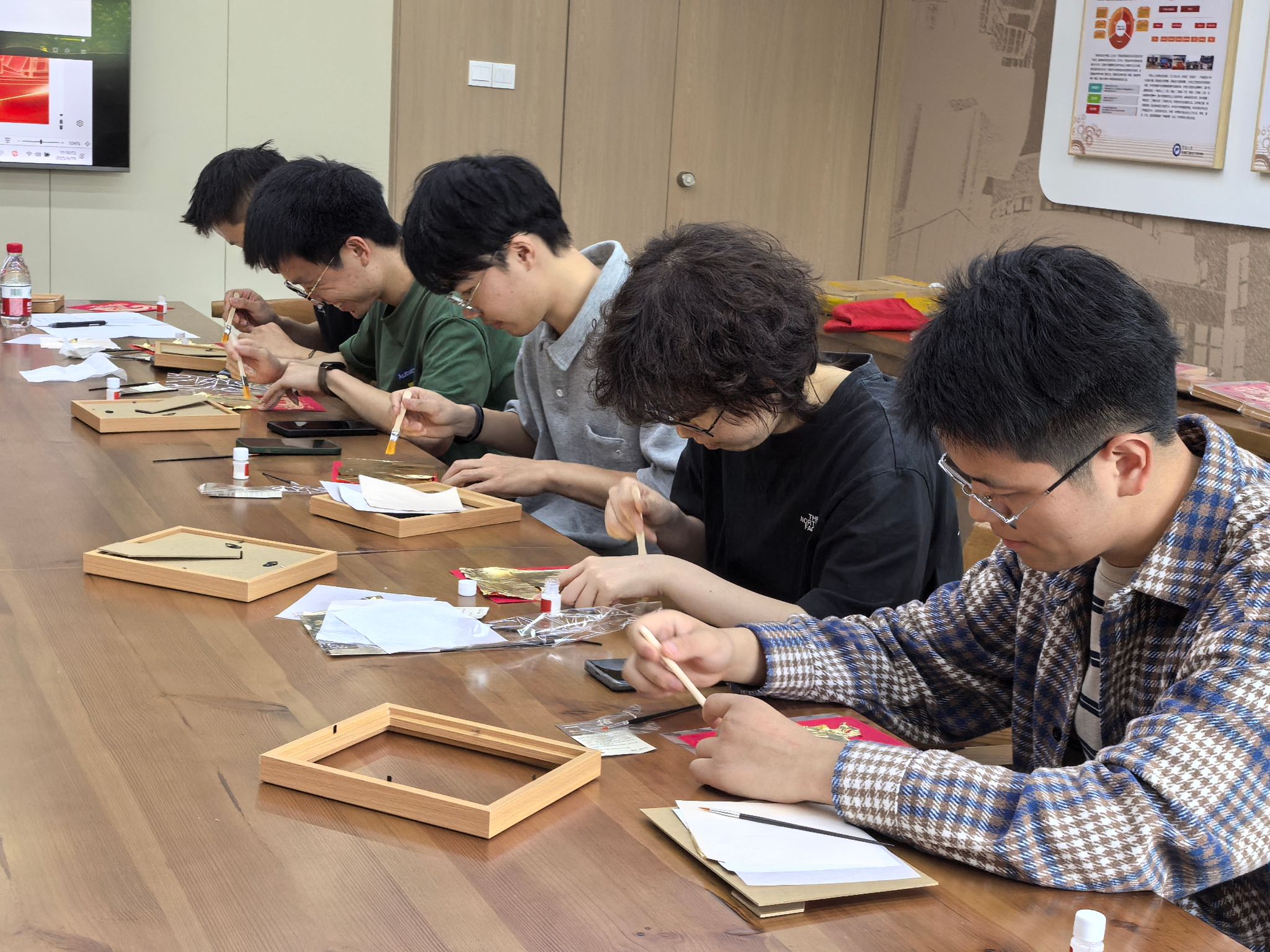 活动最后,党员们围绕“爱党、爱国、廉洁”三大主题开展红色手工制作。红船象征着党的起航,金箔画承载着对廉洁精神的理解。通过亲手创作,党员们不仅锻炼了动手能力,也在实践中进一步深化了对党史、信仰和纪律意识的认识。