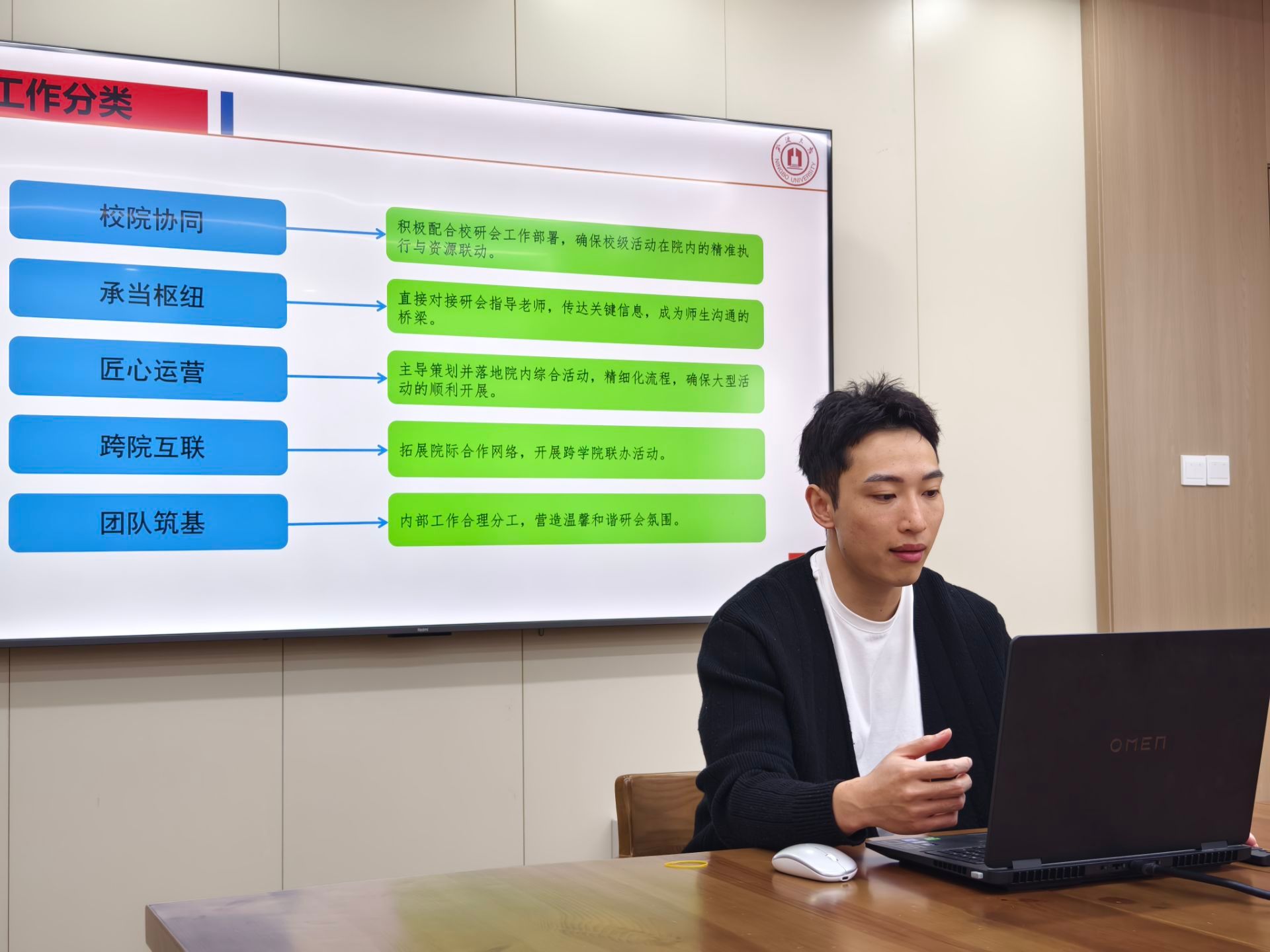 研究生会新老见面会在绣山工程楼208会议室顺利举行,新老研会成员共20余名参与会议。这场承载着责任和期待的盛会,不仅仅是对过去工作的总结,更是为未来研会的发展注入了新的动能。各个部门依次述职,学院负责老师参会指导,共同见证了学院研会的“薪火”传递。