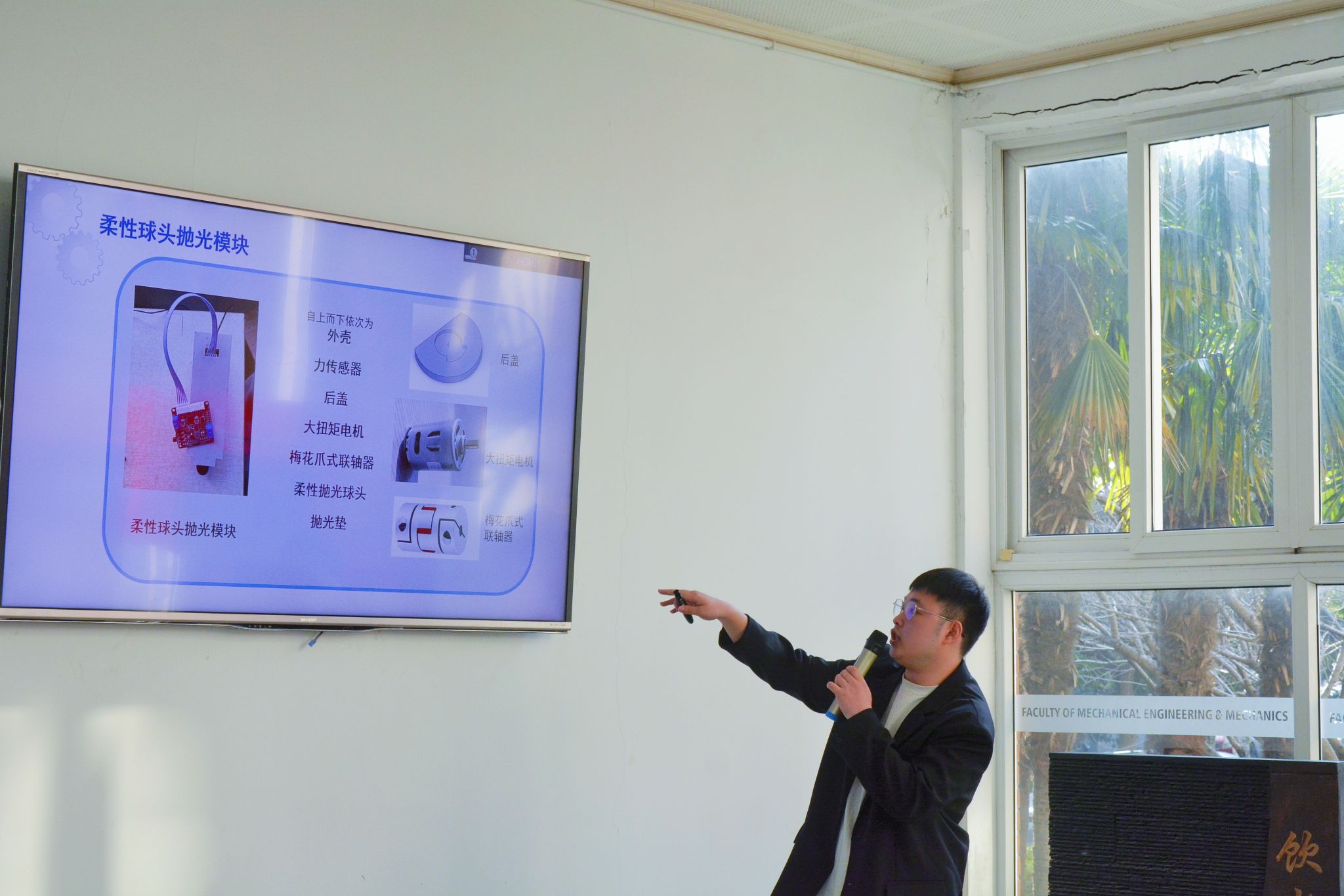 亲临现场的是一众热爱机械、机器人设计的同学们。各个组的选手们依次上场,介绍亲手制作的机械产品与实例展示,创意的产物映入眼帘:抓取机械臂、四翼无人机、智能红外循迹小车、大小球分拣机、多功能收音机、抛光机器人等等,他们的成果让在场的观众们都大开眼界,大饱眼福。